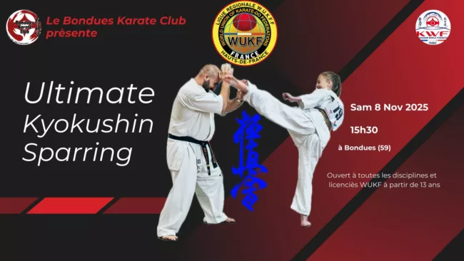 Stage Ultimate Kyokushin Sparring 2025 Grand succès pour le 1er stage combat de l’année ce samedi 8 novembre 2025 au dojo de Bondues! Pas moins d’une soixantaine de pratiquants kyokushin…